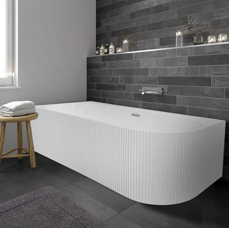 Изготовлена из высококачественного акрила, который отличается прочностью, долговечностью и приятной на ощупь поверхностью. Внешние стенки ванны выполнены с рифлением, придающим изделию современный и оригинальный внешний вид, а также повышающим устойчивость конструкции.
