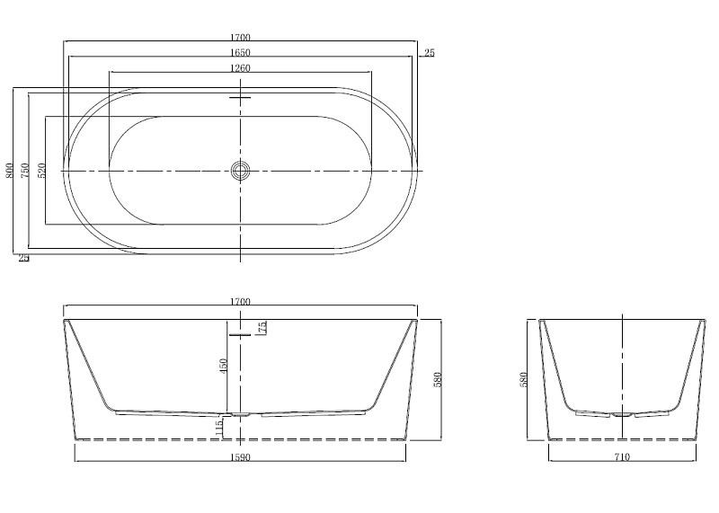 Ванна акриловая, свободностоящая, в комплекте с сифоном и металлической рамой.