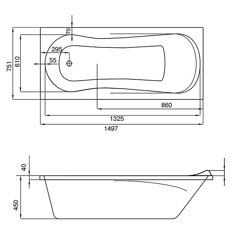 Отдельно приобретается монтажный комплект: каркас, система слив-перелив с сифоном, крепления ванны к стене и комплект креплений фронтальной панели.