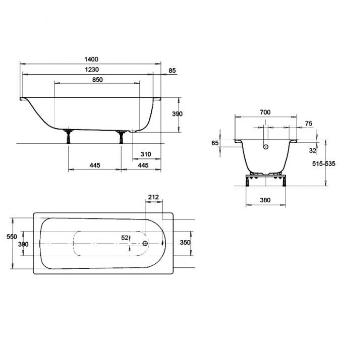 Ванна стальная Kaldewei Eurowa Verp. 140х70х39, alpine white, без ножек