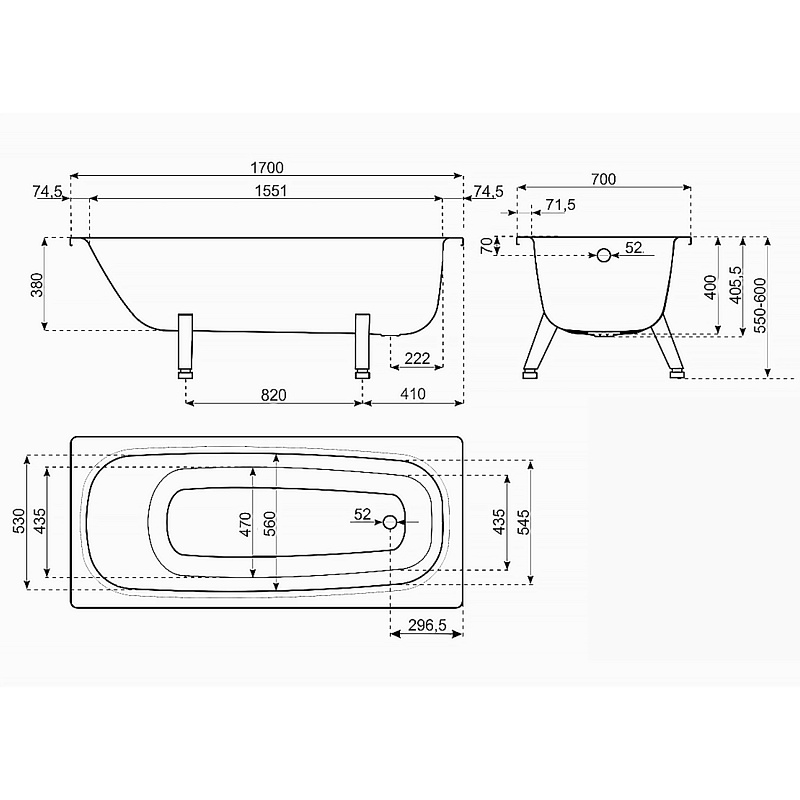 Ванна стальная ВИЗ RIANTO 170х70 пристенная (RV-170)